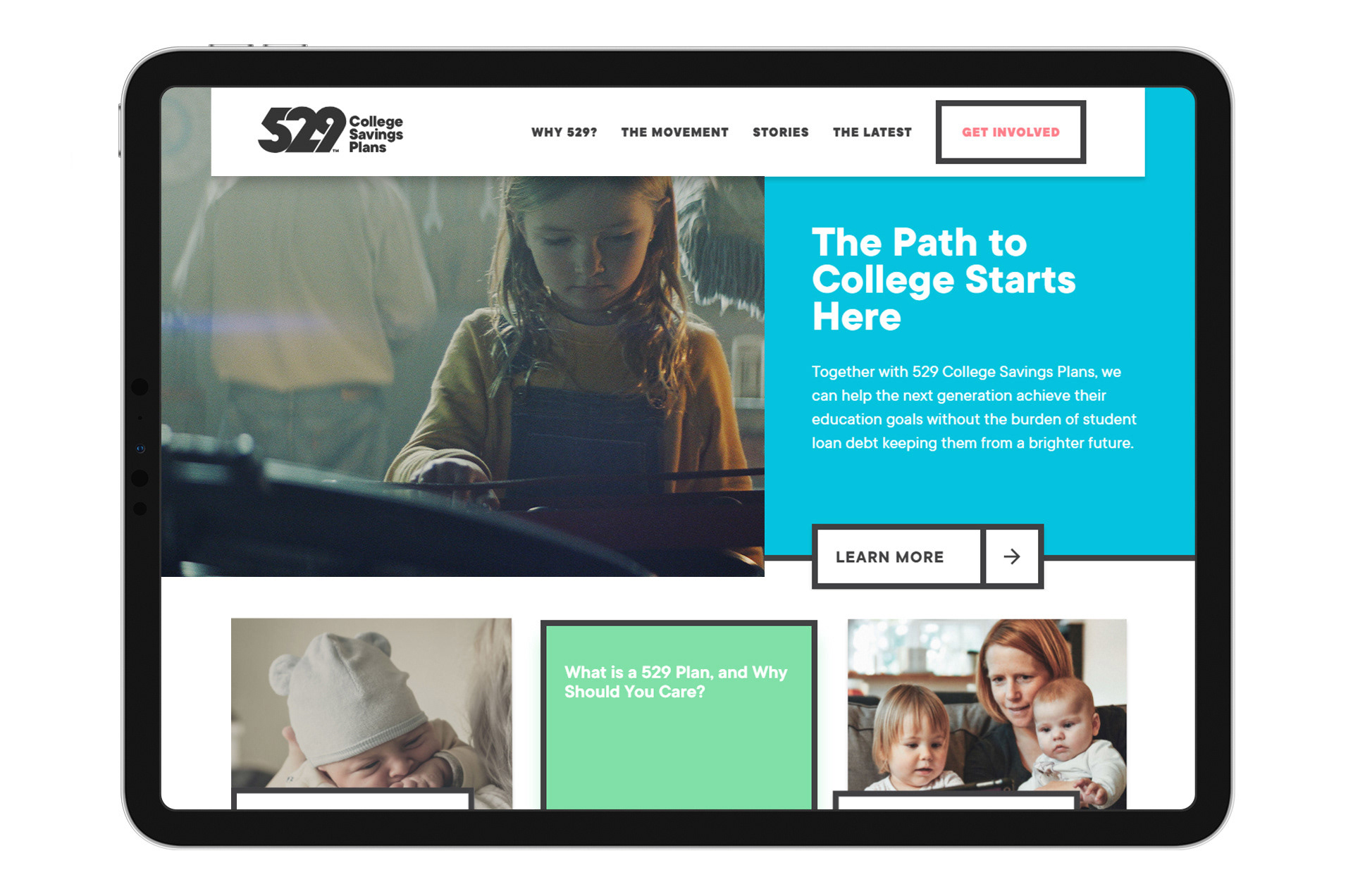 While the TV spots would be the main driver of awareness, a microsite was crafted to share our movement with as many people as possible. 529forCollege.com would house custom content, articles and stories to help educate visitors on the benefits of 529s and how they too could join the movement. We generated a conversation nationwide with targeted PR efforts, but also created a toolkit to give each contributing partner the ability to create their own buzz with videos, social calendars and even custom Daniel Tiger’s Neighborhood collateral that helped explain the importance of saving.
