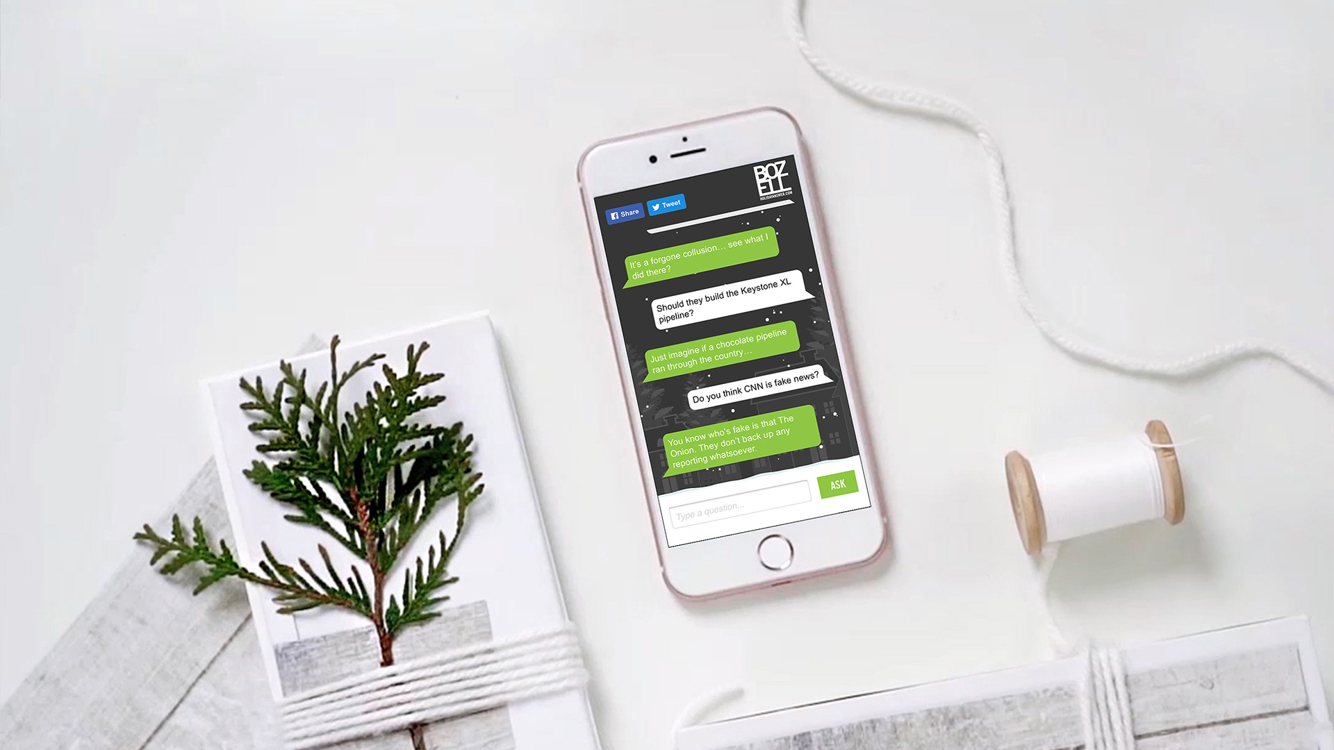 Everyone on our mailing list received a printed card that introduced the online tool. From there, recipients could visit the site to partake in an instant message-like conversation with run responses sure to alleviate even the most stressful situations. The chatbot understood a range of topics, from political questions centered around the president, current events and controversial topics, to more personal questions about relationships, finances and the prospect of having children. As the questions started pouring in, we increased the chatbot’s repertoire by adding even more subjects and current events based on trends.