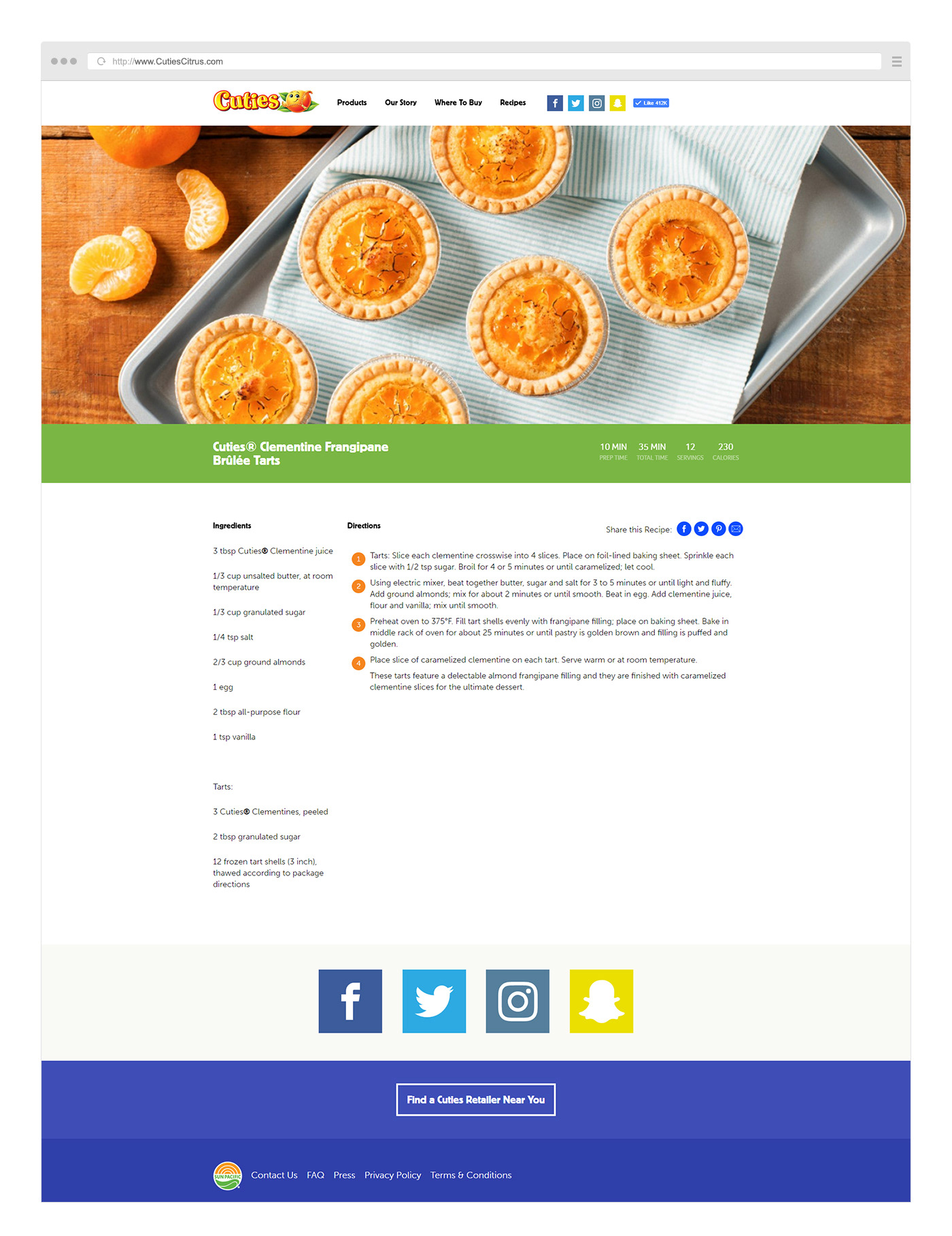 Results: The advertising from late 2016 to early 2017 increased brand preference for Cuties to an amazing 71%. The online videos were viewed over 10 million times on YouTube while the sponsored Snapchat lens performed 400% better than the benchmark with nearly 70 million total impressions, 3 million shares and 30 million views from the shares.
