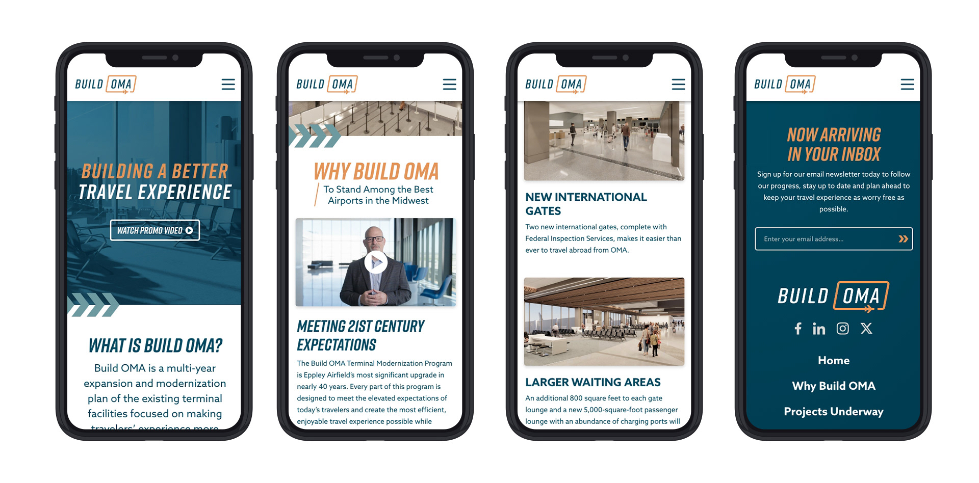 Solution: We partnered with OAA to create Build OMA, a brand and campaign for the multi-year TMP. We began by establishing three overarching communication goals: 1) build excitement to preempt any traveler frustration, 2) convey the purposeful nature of every enhancement, and 3) build confidence in OAA’s leadership throughout the duration of the program.