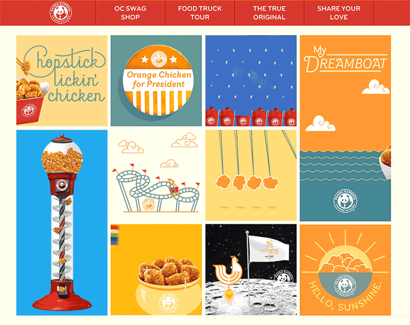 To promote Panda Express’ most popular dish, Orange Chicken, we created a multi-platform campaign consisting of a swag shop, a cross-country food truck tour, a social aggregator based around #OrangeChickenLove, in-store and OOH signage, and a custom microsite to house all the content.